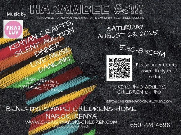 HARAMBEE: The word means ‘all put together” in Swahili, describing a Kenyan tradition of community self-help. It is happening again this month on Saturday, August 23, 2025, from 5:30 – 8:30 p.m. at Hennessy Hall.